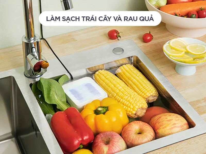 giả dụ các loại thực phẩm tươi sống như cá, hải sản và giết thịt có mùi khó chịu, hãy cho vào chậu nước đầy, đặt đầu phun bọt khí sát đáy, vặn nút điều khiển đến vị trí hình con cá. Khí Ozone sẽ cái những chất độc hữu cơ, diệt vi khuẩn trong rau quả. Trong khoảng đó với thể giảm nguy cơ ngộ độc thực phẩm.